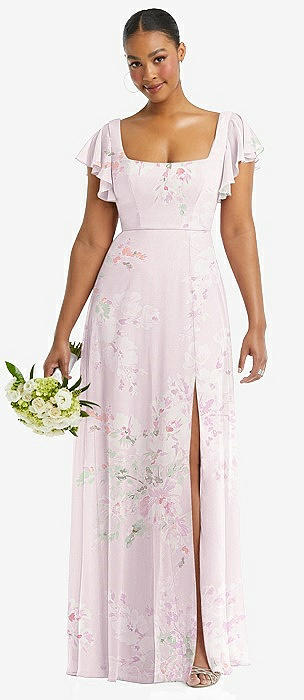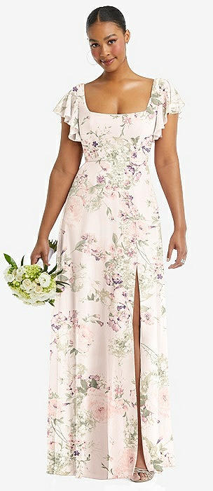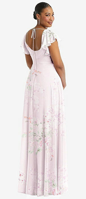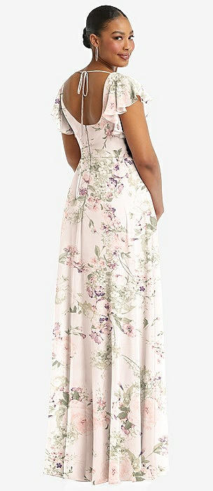 Flutter Sleeve Scoop Open-Back Chiffon Maxi Dress in blush garden