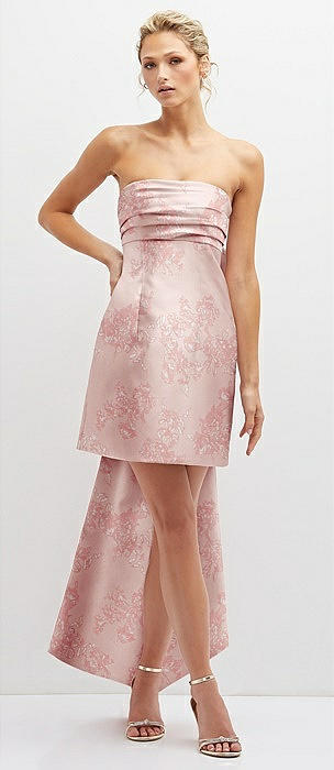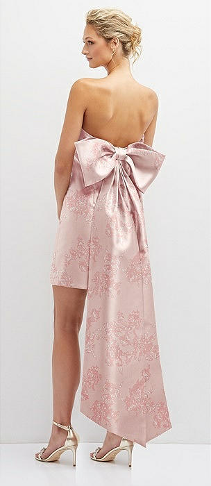 Floral Strapless Satin Column Mini Dress with Oversized Bow in bow and blossom print