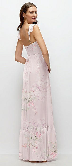 Bustier-Style Chiffon Tiered Ruffle Maxi Dress with Adjustable Straps in blush garden