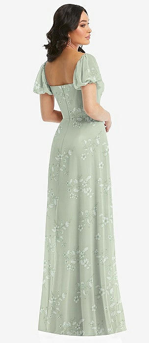 Puff Sleeve Chiffon Maxi Dress with Front Slit in vintage primrose sage