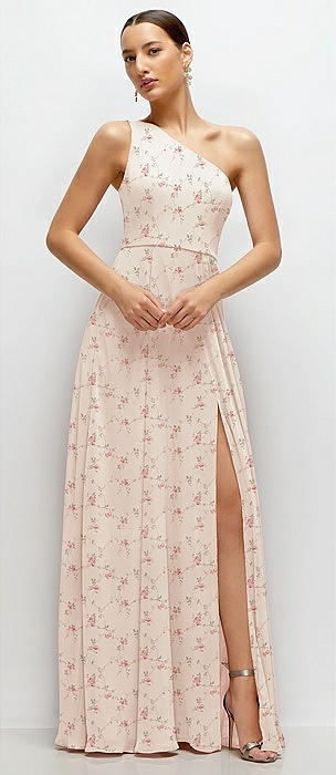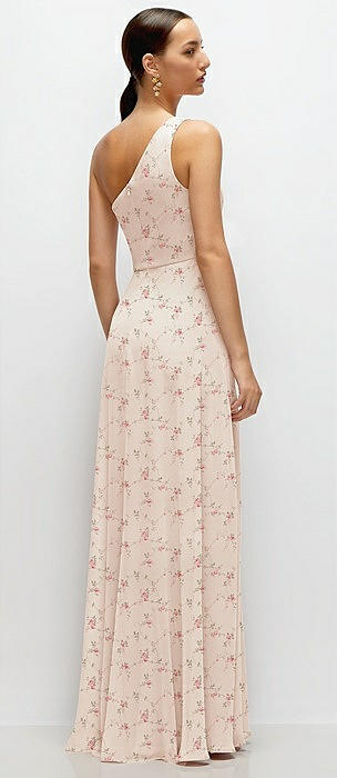 Chiffon One-Shoulder Maxi Dress with Circle Skirt in blush garden