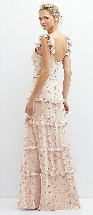 Tiered Chiffon Maxi A-line Dress with Convertible Ruffle Straps in coquette floral print
