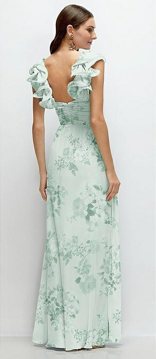 Dramatic Ruffle Edge Strap Chiffon Maxi Dress in mint green floral