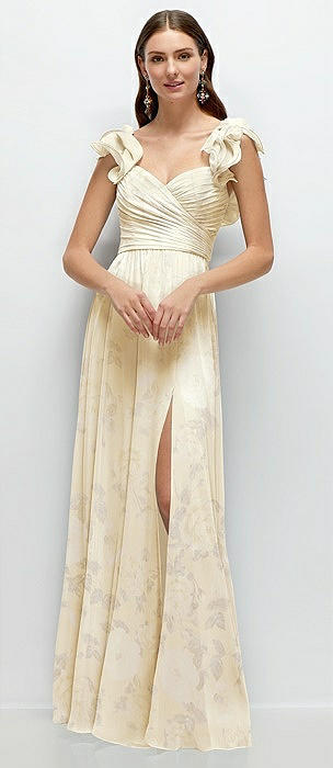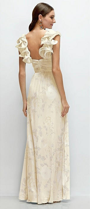 Asymmetrical Ruffle Chiffon Bias Slip Maxi Dress in butterfly botanica ivory