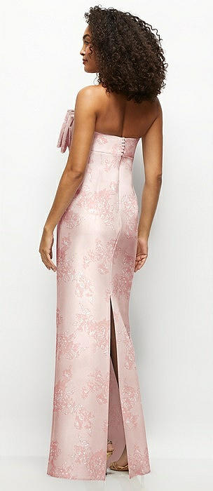Strapless Floral Satin Column Maxi Dress with Oversized Bow in bow and blossom print
