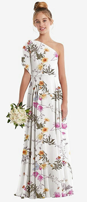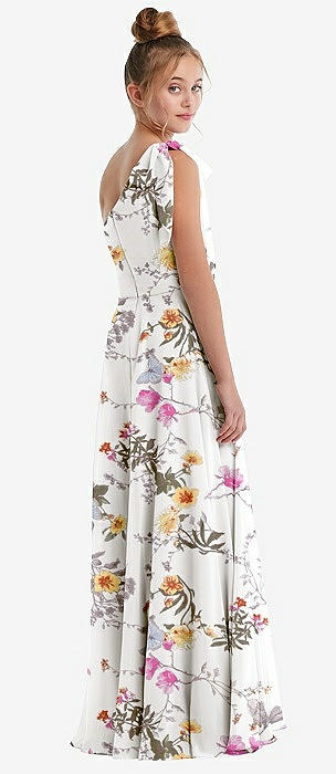 One-Shoulder Scarf Bow Chiffon Junior Bridesmaid Dress in butterfly botanica ivory