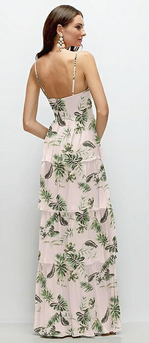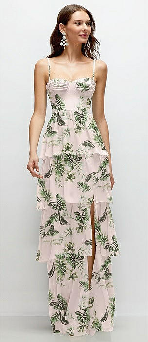 Bustier-Style Chiffon Tiered Ruffle Maxi Dress with Adjustable Straps in blush garden