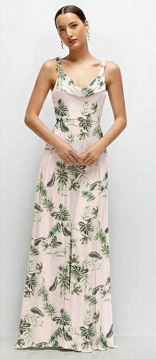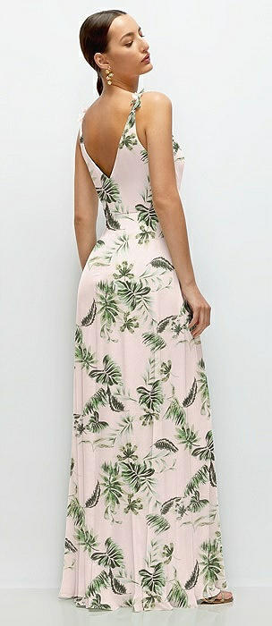 Cowl Neck Chiffon Maxi Dress with Hand-Worked Petal Straps in palm beach print