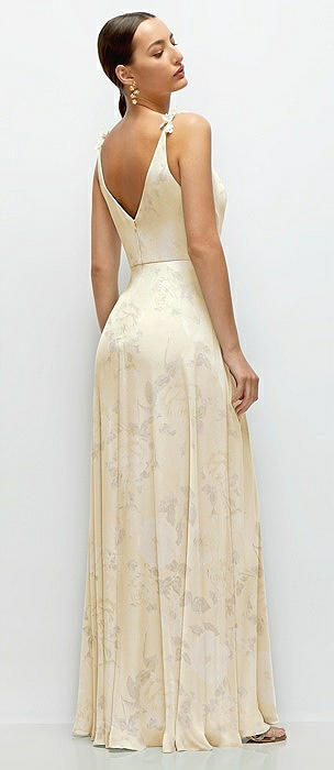 Cowl Neck Chiffon Maxi Dress with Hand-Worked Petal Straps in butterfly botanica ivory
