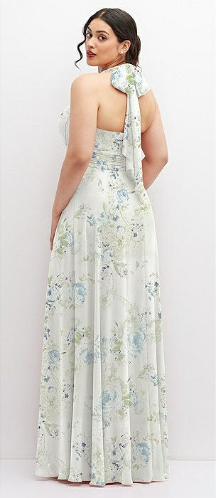 Chiffon Convertible Maxi Dress with Multi-Way Tie Straps in mint green floral