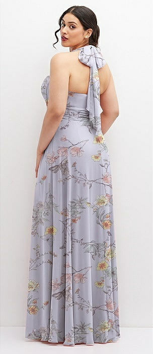 Chiffon Convertible Maxi Dress with Multi-Way Tie Straps in butterfly botanica silver dove