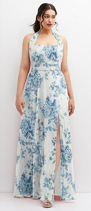 Chiffon Convertible Maxi Dress with Multi-Way Tie Straps in cottage rose dusk blue