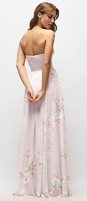 Strapless Pleated Surplice Chiffon Maxi Dress with A-Line Skirt in blush garden