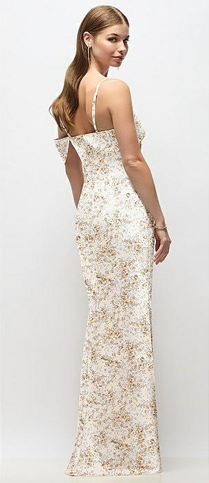 Strapless Champagne Brocade Column Dress with Back Slit in champagne filigree