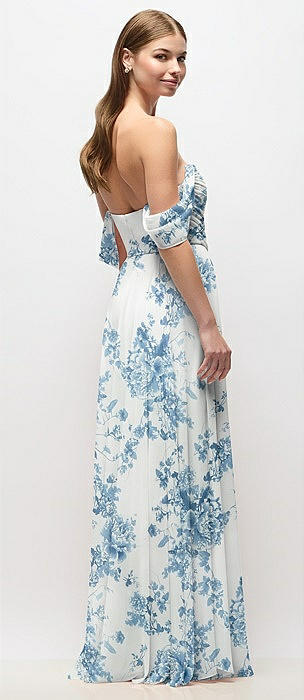 Off-the-Shoulder Basque Corset Floral Chiffon Maxi Dress in butterfly botanica silver dove