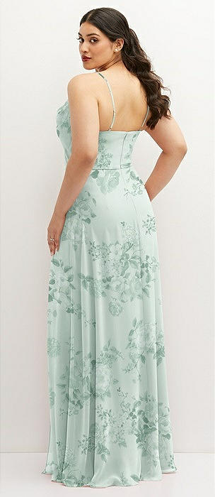 Soft Cowl-Neck A-Line Maxi Dress with Adjustable Straps in mint green floral