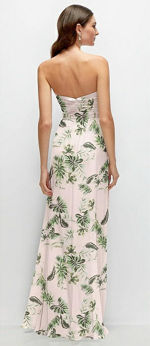 Strapless Pleated Surplice Chiffon Maxi Dress with A-Line Skirt in palm beach print