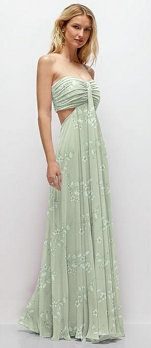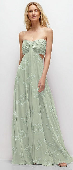 Strapless Empire Waist Cutout Maxi Dress with Covered Button Detail in vintage primrose sage