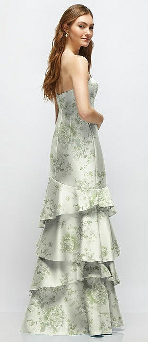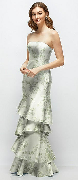 Floral Strapless Bodycon Maxi Dress with Tiered Ruffle Skirt in sage cottage rose