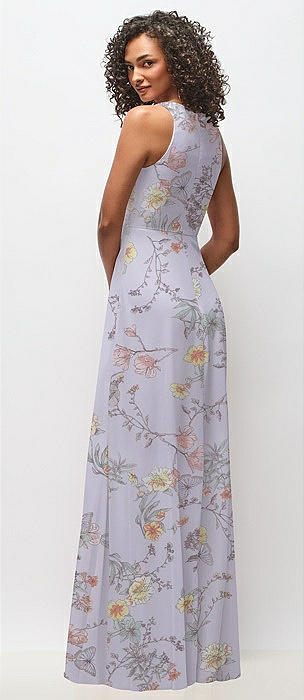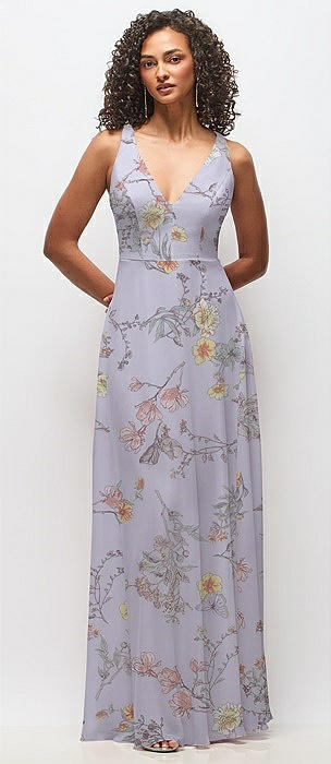 Deep V-Neck Chiffon Maxi Dress in butterfly botanica silver dove