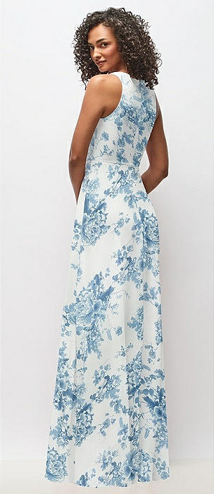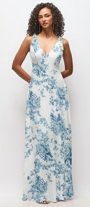 Deep V-Neck Chiffon Maxi Dress in cottage rose dusk blue
