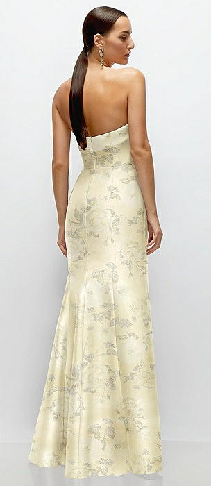 Strapless Cuff Neckline Floral Satin Trumpet Gown in butter yellow floral