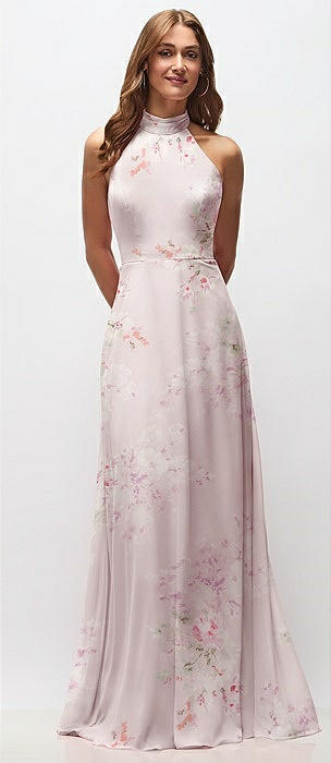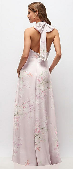 High Neck Halter Backless Maxi Dress in blush garden