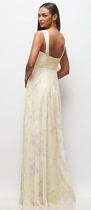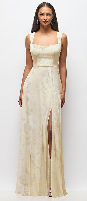 Contoured Wide Strap Sweetheart Maxi Dress in butter yellow floral