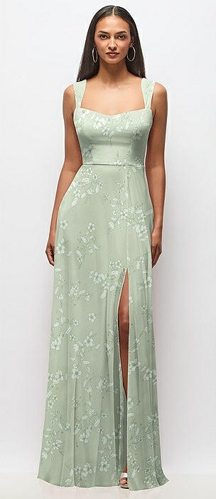 Contoured Wide Strap Sweetheart Maxi Dress in mint green floral