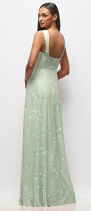 Spaghetti Strap Draped Skirt Gown with Front Slit in mint green floral