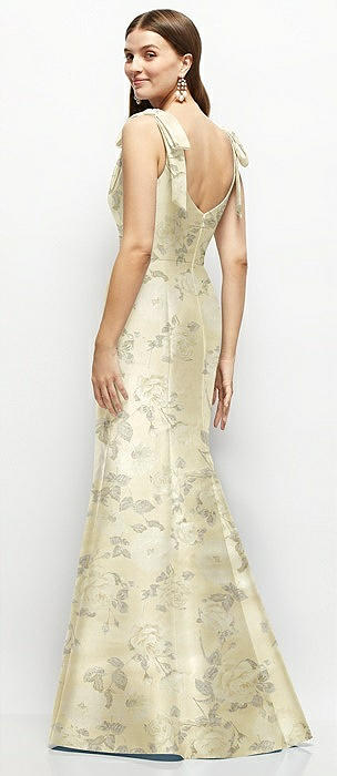 Strapless Cuff Neckline Floral Satin Trumpet Gown in bow and blossom print