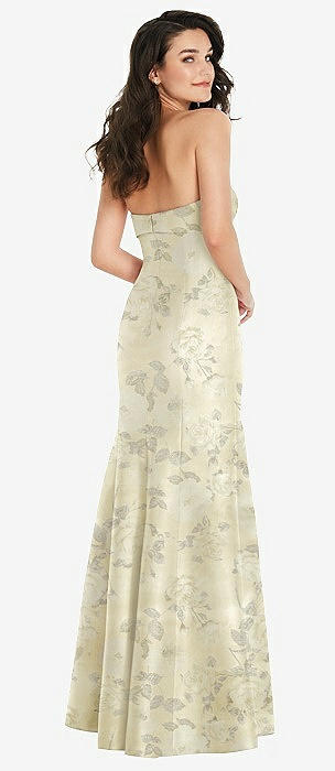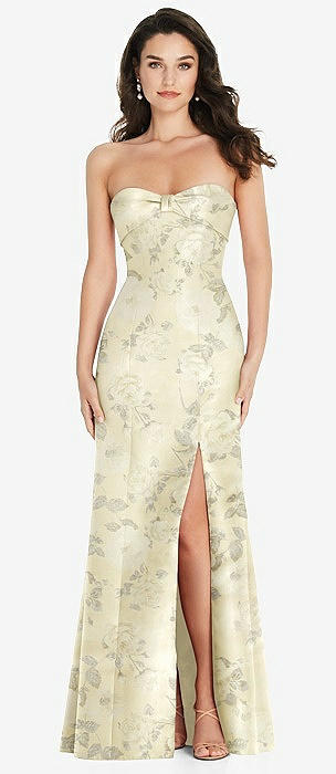 Bow Cuff Strapless Floral Princess Waist Trumpet Gown in butter yellow floral