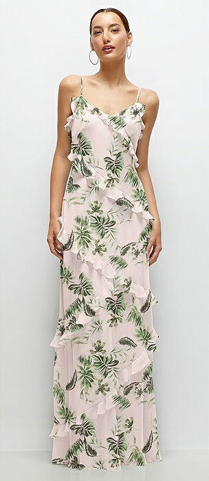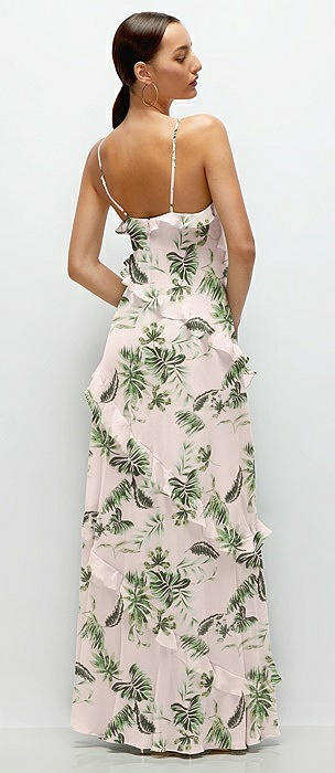 Asymmetrical Ruffle Chiffon Bias Slip Maxi Dress in palm beach print