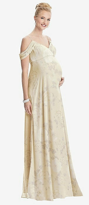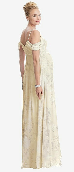 Draped Cold-Shoulder Chiffon Maternity Dress in butter yellow floral
