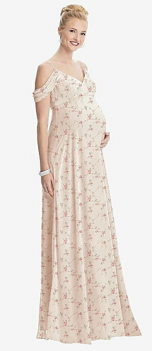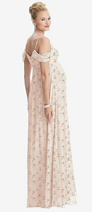 Draped Cold-Shoulder Chiffon Maternity Dress in coquette floral print