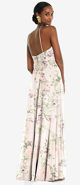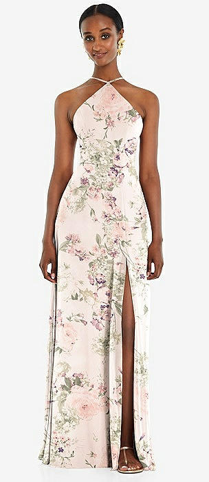 Diamond Halter Maxi Dress with Adjustable Straps in blush garden
