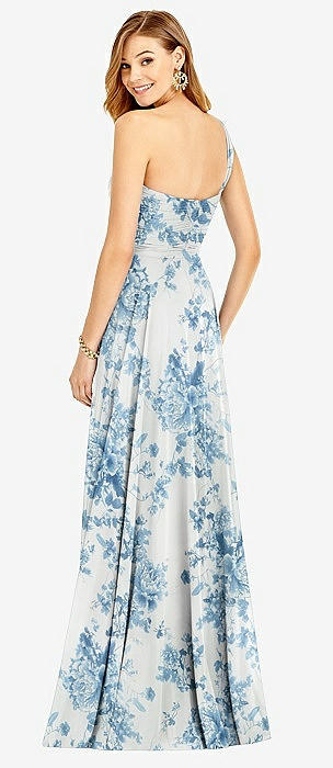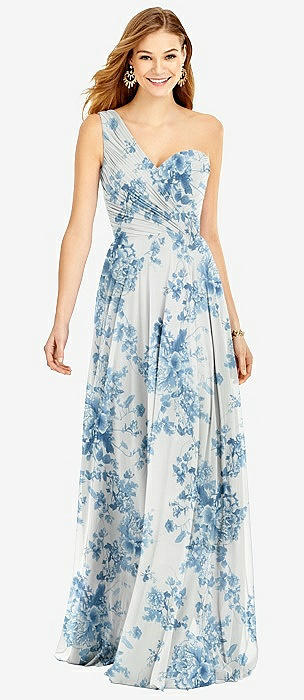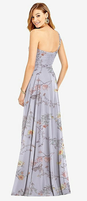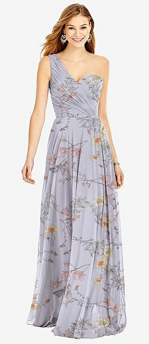 One-Shoulder Draped Chiffon Maxi Dress - Dani in butterfly botanica silver dove