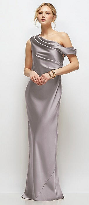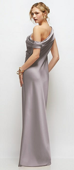 Draped One-Shoulder Bias Stretch Satin Maxi Dress in cashmere gray
