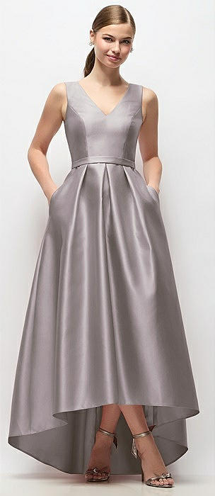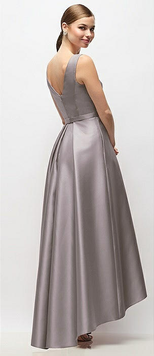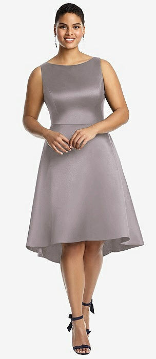 Bateau Neck Satin High Low Cocktail Dress in cashmere gray