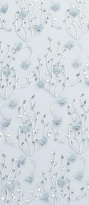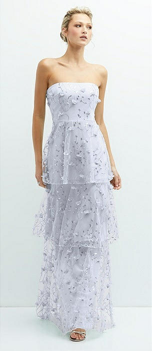 Strapless 3D Floral Embroidered Dress with Tiered Maxi Skirt in silver dove