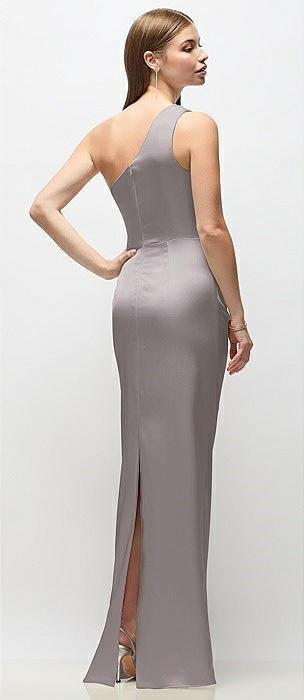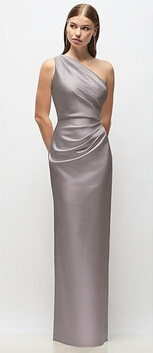One-Shoulder Draped Bodice Stretch Satin Column Maxi Dress in cashmere gray