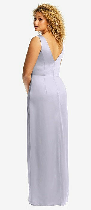 Sleeveless Draped Wrap Bodice Stretch Satin Column Maxi Dress in cashmere gray