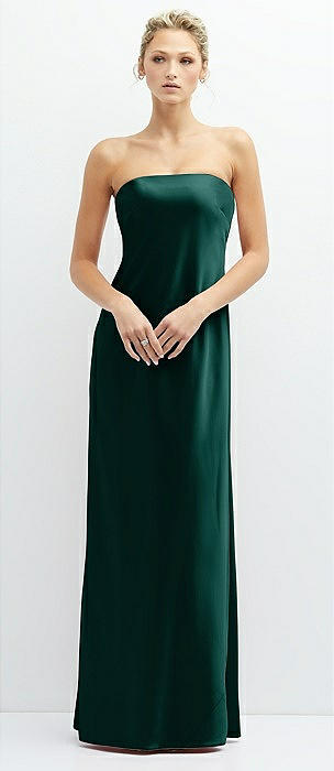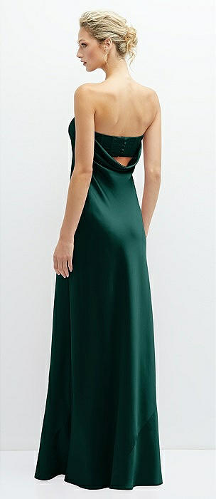 Strapless Maxi Bias Column Dress with Peek-a-Boo Corset Back in evergreen