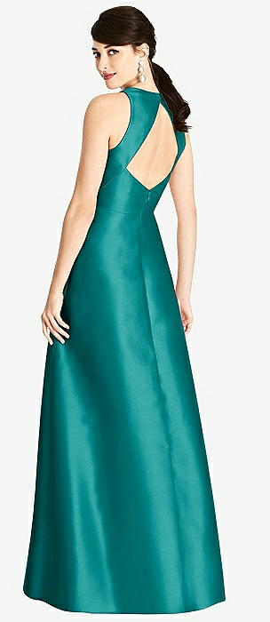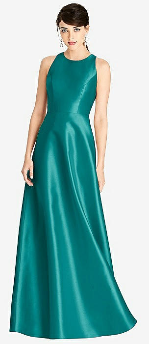 Sleeveless Open-Back Satin A-Line Dress in jade