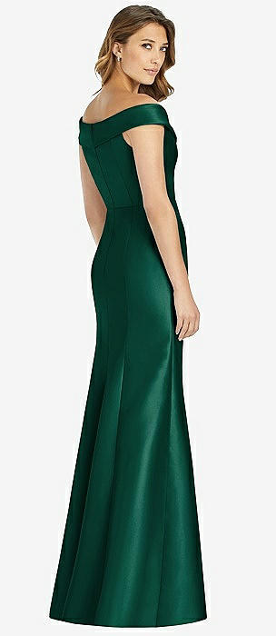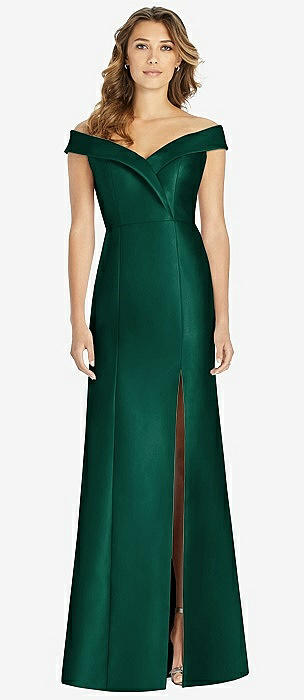 Off-the-Shoulder Cuff Trumpet Gown with Front Slit in hunter green