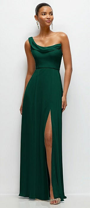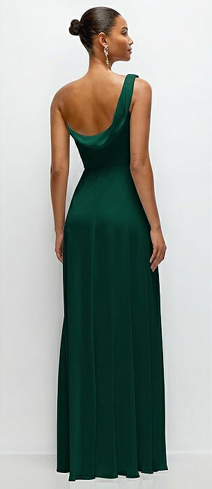 Chiffon One-Shoulder Maxi Dress with Draped Cowl Neckline in hunter green