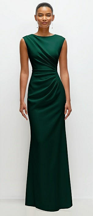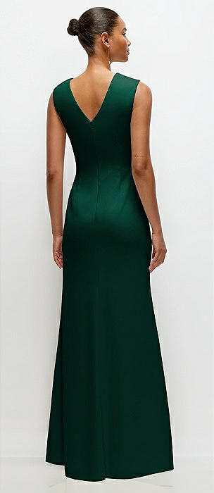 Sleeveless Cap Shoulder Crepe Maxi Dress with Trumpet Skirt in hunter green