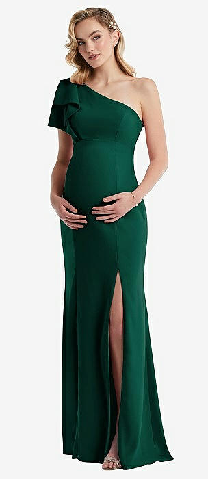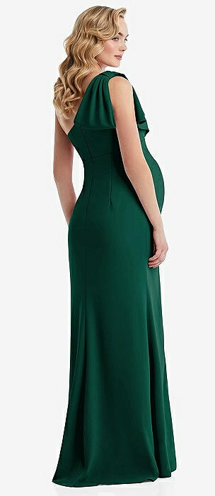One-Shoulder Ruffle Sleeve Maternity Trumpet Gown in hunter green
