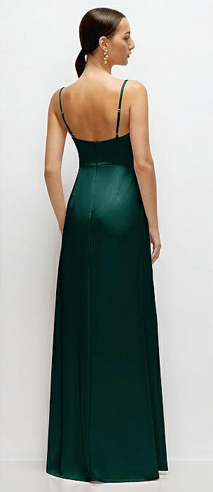 Square-Neck Satin A-line Maxi Dress with Front Slit in evergreen