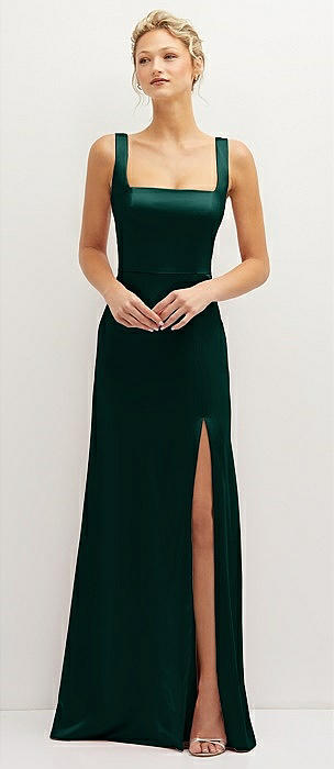 Square-Neck Satin A-line Maxi Dress with Front Slit